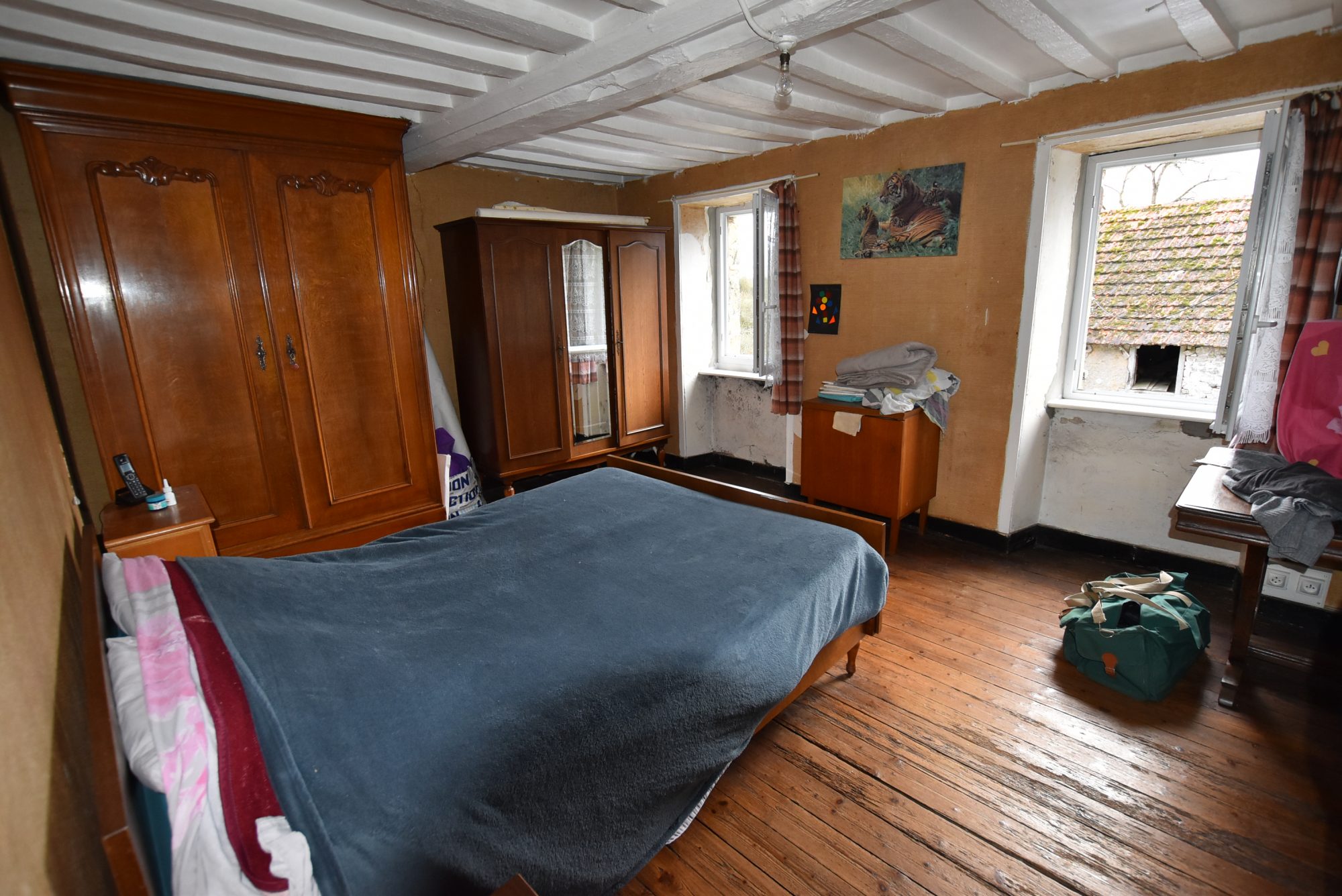 - Au premier étage : deux chambres et une salle d'eau avec WC.