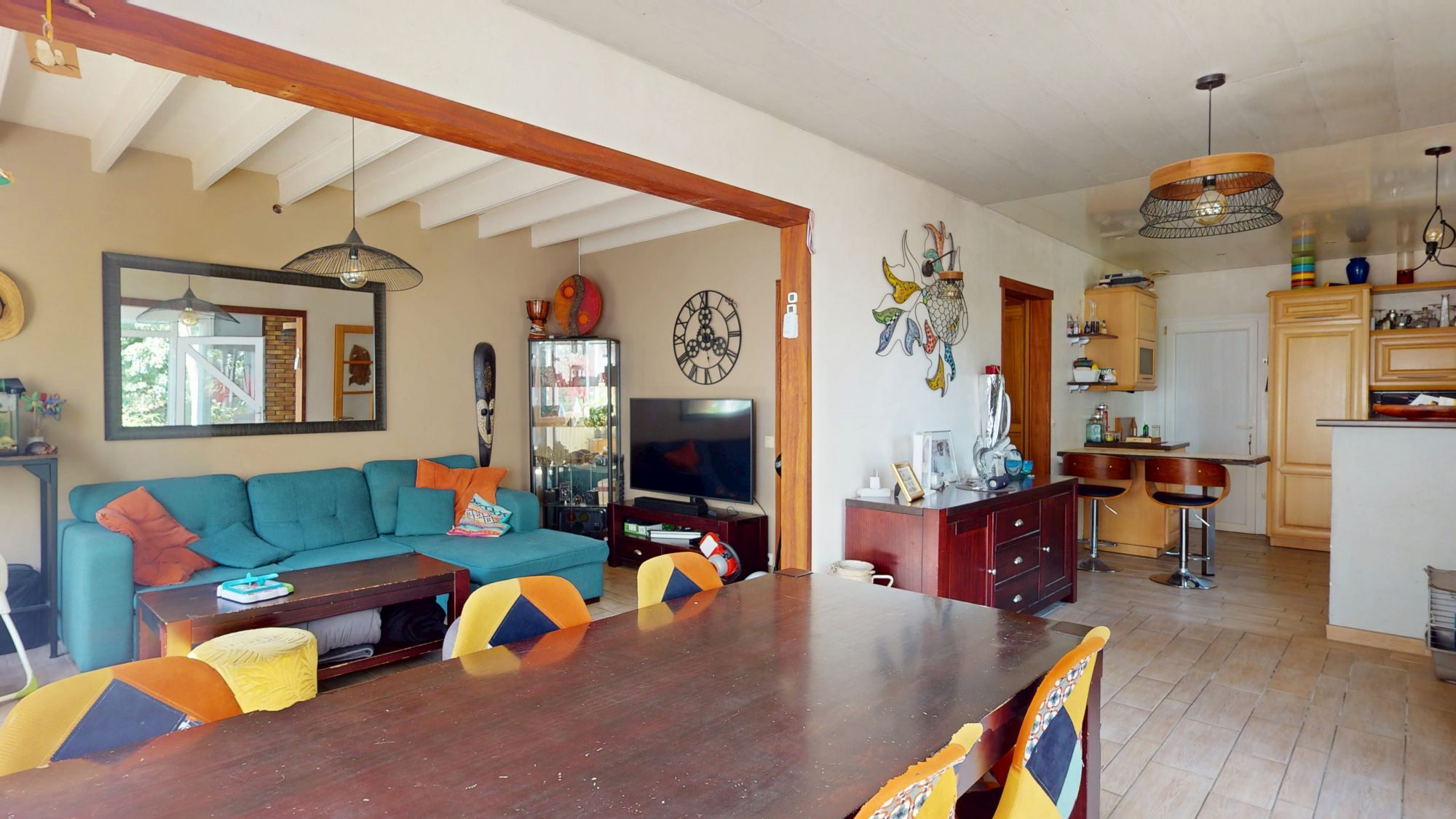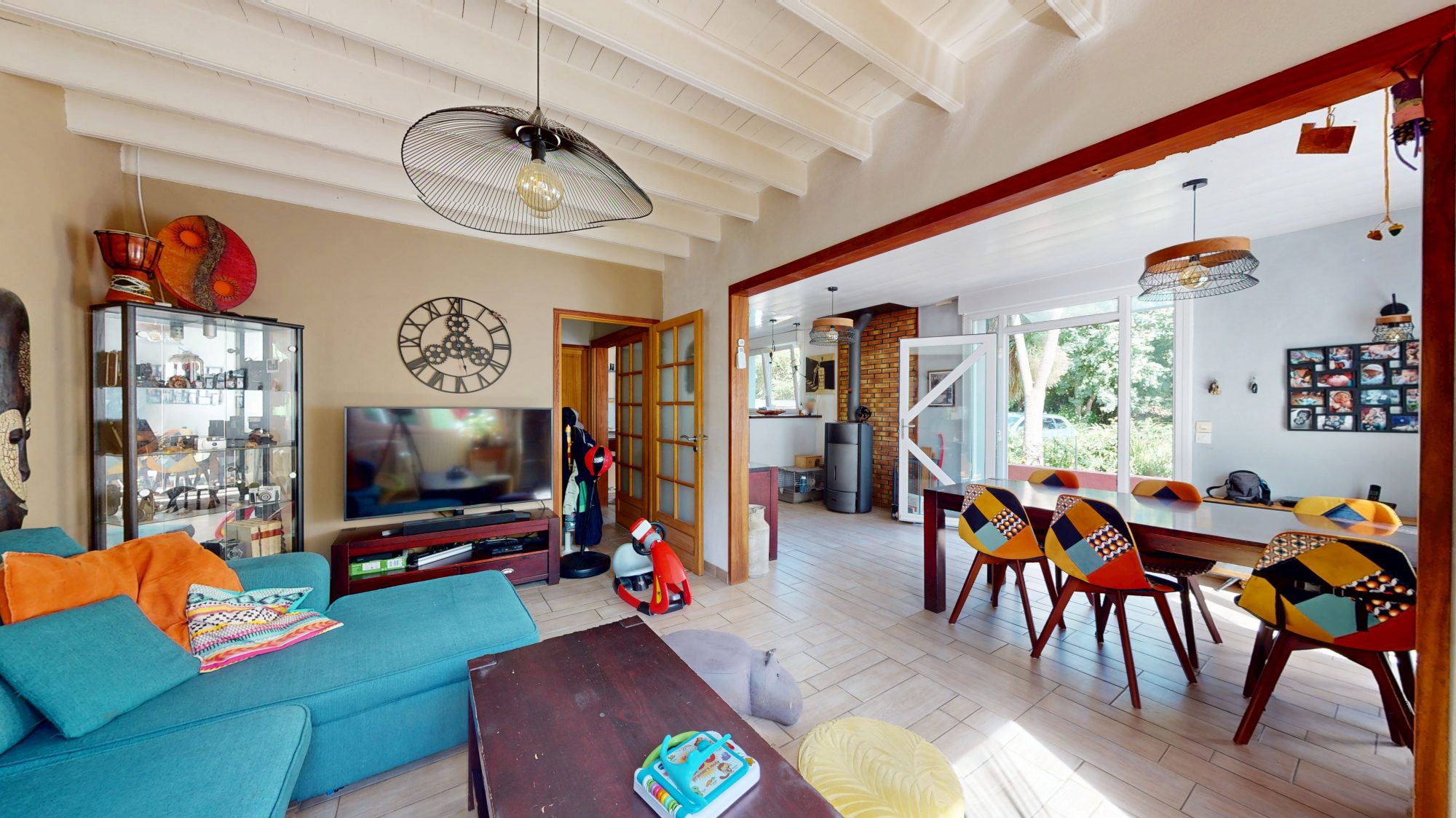 Sur un terrain 11 355 m², maison comprenant : - au rez-de-chaussée : séjour avec poêle à bois, salon, cuisine ouverte, bureau, WC, débarras ; - à l’étage : palier, salle de bains avec WC, trois chambres. Terrasses au pignon et sur l'avant. Autre bâtiment contenant atelier, cellier, grand garage. Anciens burets à porcs. Prés autour avec plan d'eau et ancien lavoir. Huisseries PVC, chauffage central au gaz. Assainissement individuel à mettre aux normes.