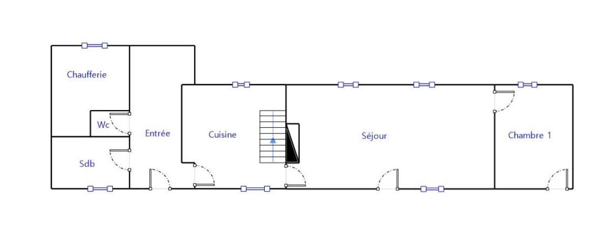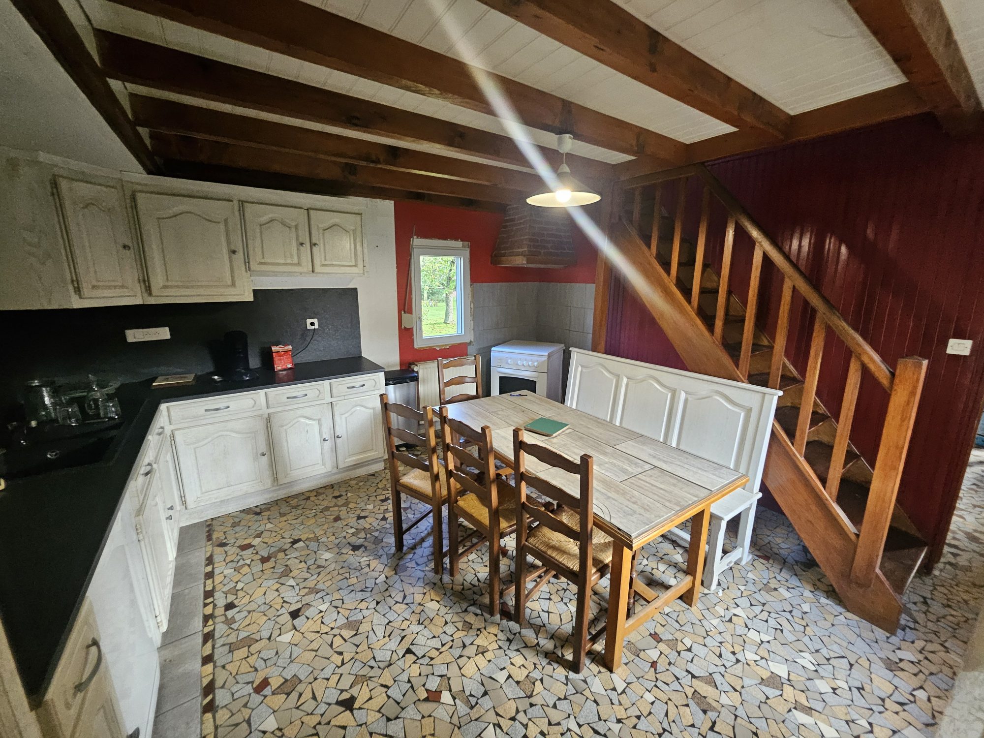 Au rez-de-chaussée : un salon-séjour avec son poêle à bois, cuisine aménagée, un dégagement offre, salle de bains et WC, chaufferie. Une pièceà aménager en chambre