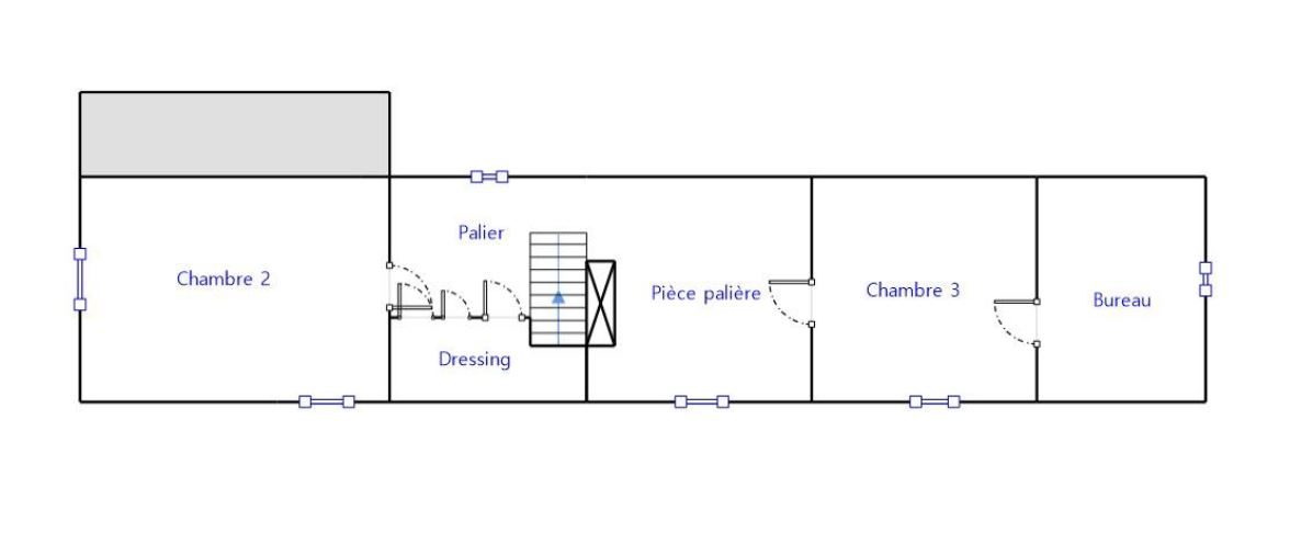 A l'étage : un palier dessert trois chambres dont deux traversantes, une pièce.